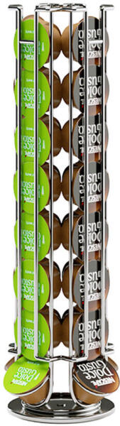 Leziter Dolce Gusto Kávékapszula Tartó Állvány - Stílusos rend a kávézáshoz! ☕ Ez a forgatható kávékapszula tartó tökéletes megoldás, hogy rendszerezd Dolce Gusto kapszuláidat, miközben elegáns kiegészítője lesz konyhádnak vagy irodádnak. Főbb előnyök:Kapacitás: Akár 32 Dolce Gusto kapszula tárolására alkalmas. Anyag: Tartós, krómozott acél váz a hosszú élettartamért. Kialakítás: 360 fokban forgatható, így könnyen megtalálhatod a kedvenc ízed. Helytakarékos: Kompakt méretének köszönhetően kis helyen is elfér (13,5 × 13,5 × 43 cm). Stílusos: Modern, elegáns megjelenés, amely bármilyen környezetbe illik. Kinek ajánljuk? Kapszulás kávéfőzőt használóknak, akik szeretik a rendet. Otthoni kávésarok kialakításához. Irodákba, ahol többféle íz elérhetővé tétele a cél. Azoknak, akik a praktikum mellett a stílusos megjelenést is fontosnak tartják. Tulajdonságok:Jellemző ÉrtékAnyag Krómozott acélKapacitás 32 kapszulaMéret 13,5 x 13,5 x 43 cmKialakítás Forgatható állványNe hagyd, hogy a kapszulák szétszórva legyenek! Ezzel a tartóval mindig kéznél lesz a kedvenc kávéd, ráadásul a konyhád is rendezett marad. ✨