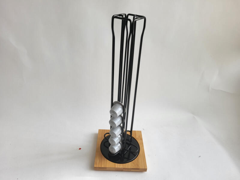 Minőségi kávékapszulatartó, fa talpazattal és 48 kapszulás kapacitással.